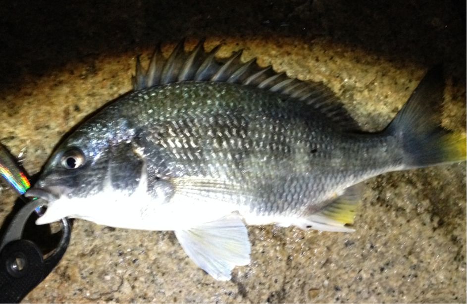 ポイントに入るなり、少し離れた所でキビレとシーバスをキャッチしてます。