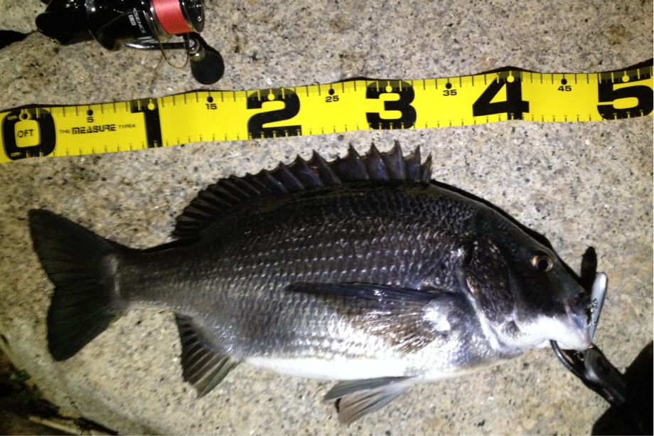 日が暮れ、キビレのアタリが出始めます。