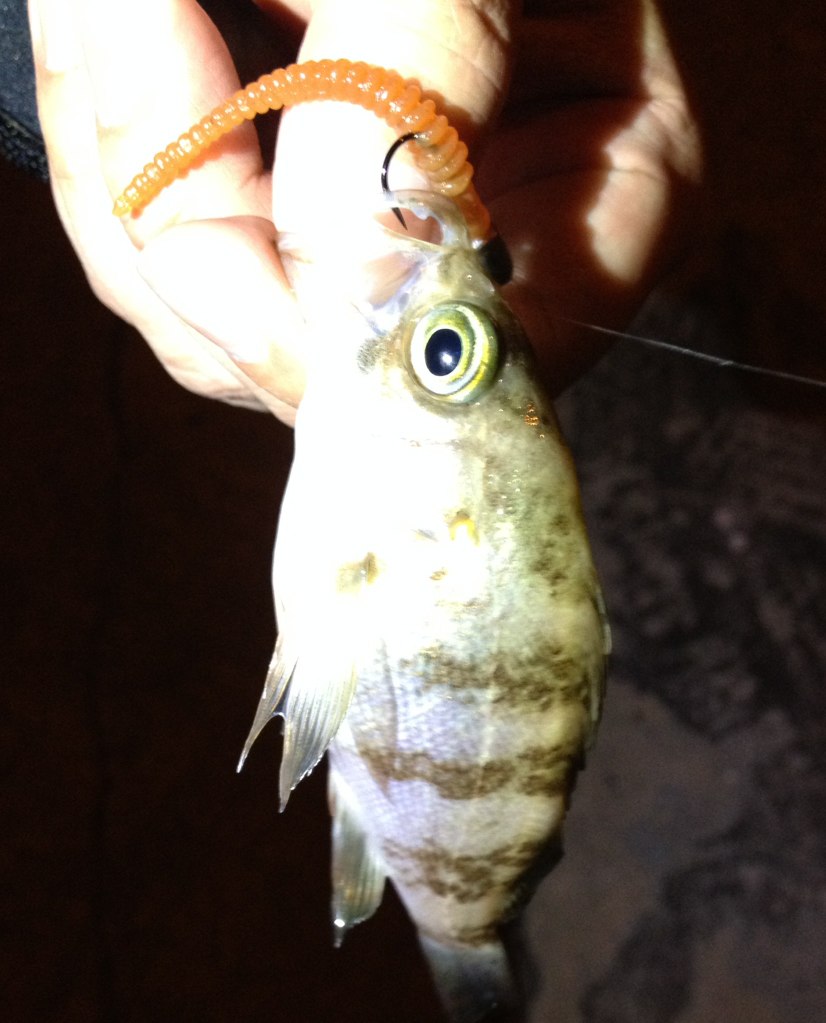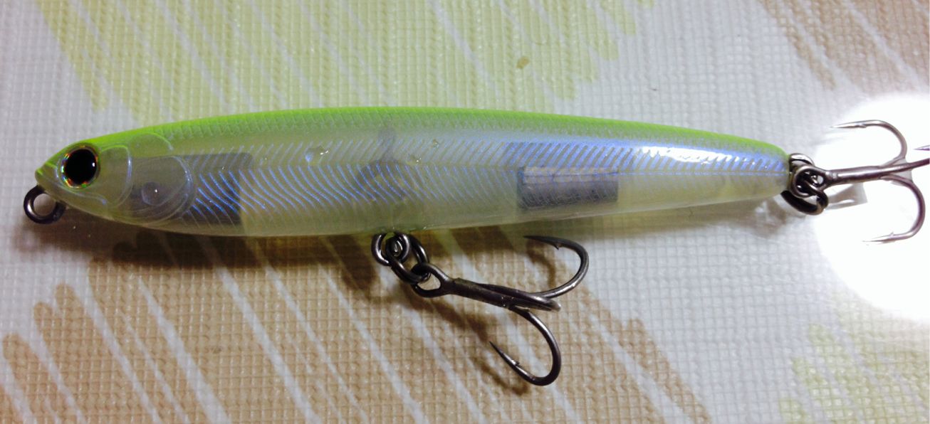 シーバスとチーバスとキビレが混じってるのかと思いましたが、とにかく確認したくて、少し沈めて引いてみると…
